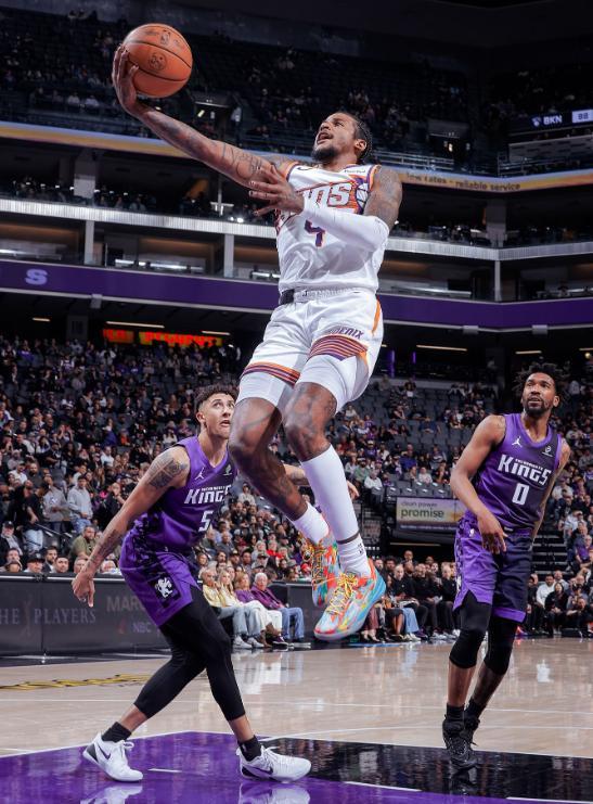 這一個(gè)比賽日,太陽(yáng)奔赴金州第一中心,客場(chǎng)挑戰(zhàn)薩克拉門托國(guó)王,本場(chǎng)比賽火線復(fù)出的布克,在上半場(chǎng)打出了非常不俗的個(gè)人表現(xiàn),雖然后兩節(jié)狀態(tài)下滑,但太陽(yáng)還是靠著全民皆兵的神勇發(fā)揮,一度建立起了20分的領(lǐng)先優(yōu)勢(shì),最終以114-103客場(chǎng)擊敗了國(guó)王,完成了單賽季橫掃對(duì)手的壯舉。